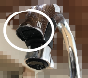 吐水口のところのレバーを右に回すとシャワー、左に回すと整流になります。